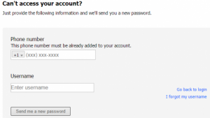 Step 2 – Users are directed to a second page where they must enter their phone number which the bank already has a record of and then their username in the blank fields. Then they must click on ´Send Me A New Password´