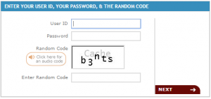 Step 3 – Now the user must enter their `User ID`, `Password` and the randomly generated code and then click `Next`.