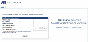 Step 1 – If an existing account holder with Macatawa Bank wish to bank online they must first enroll, this can be done by going to the Banks homepage and clicking ´Login´. Next from the drop down the person wishing to enroll must click on the link ´Enroll In Online Banking ´.