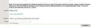 Step 2 – After submitting your Login ID, you’ll be taken to a secure page where you will answer a challenge question you has selected at enrollment. Click “Continue”
